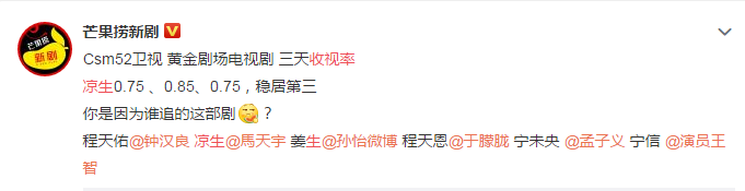 《凉生》你看都开播了好几集,微博上随便一搜,马天宇和钟汉良两家粉丝要么在暗搓搓互相内涵对方,要么在比二人出场时的收视率高低(就不放图了)。