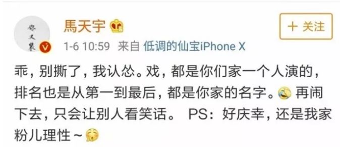 有的甚至从粉圈撕X上升到辱骂二位明星的地步,马天宇还出来语焉不详地发了一条微博: