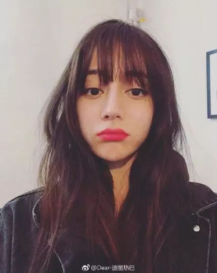 不得不说迪丽热巴的脸型真的无可挑剔什么样的发型基本上都可以完美的吼住!这样的空气刘海不仅有修饰脸型的效果减龄功能也是一级棒的哟!
