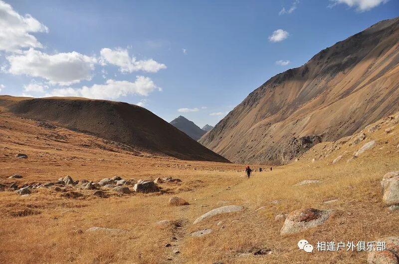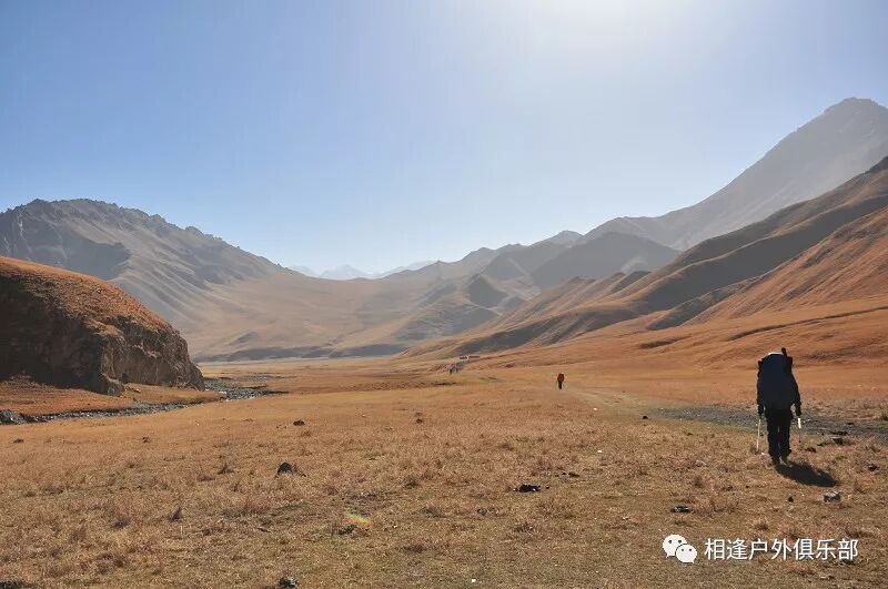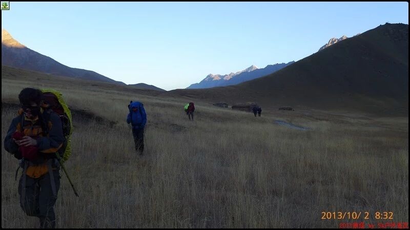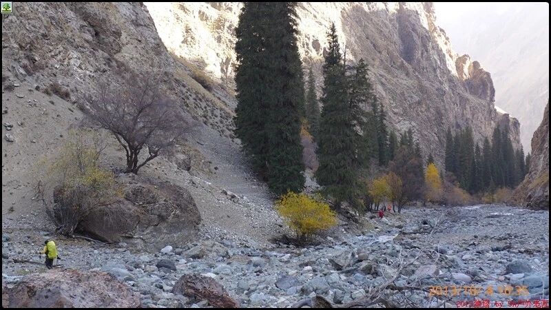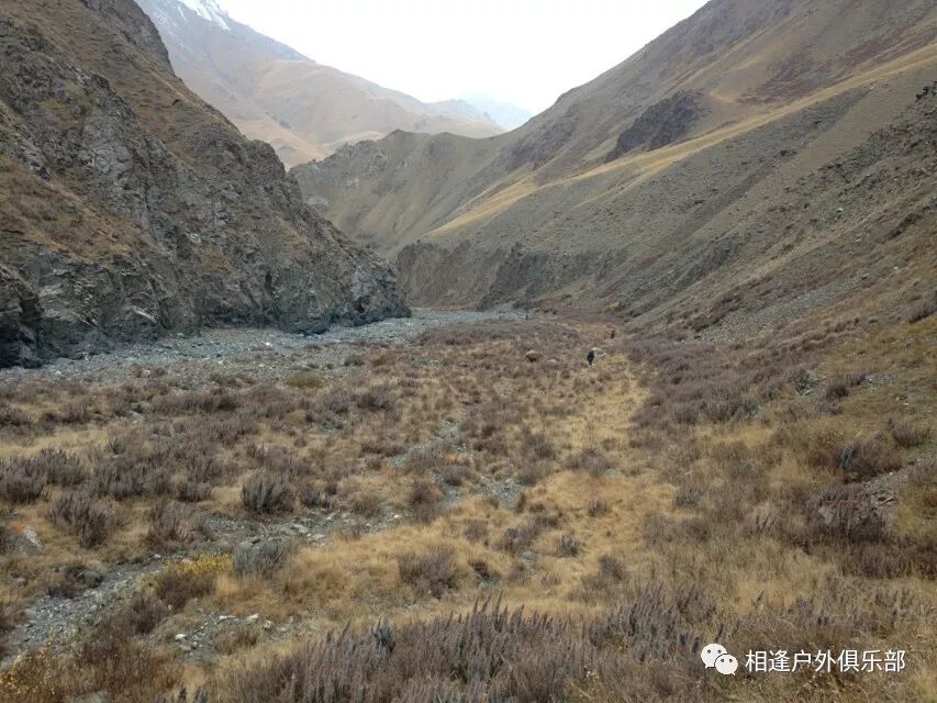 8点38分准时出发,开始了我的速度与走出无信号的激情。我们是顺着营地往东北方向下降的。(昨天到营地时的右手边)起初在河谷的左侧。一直在最前面。