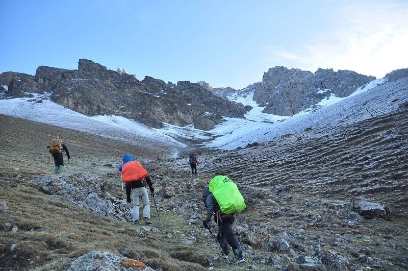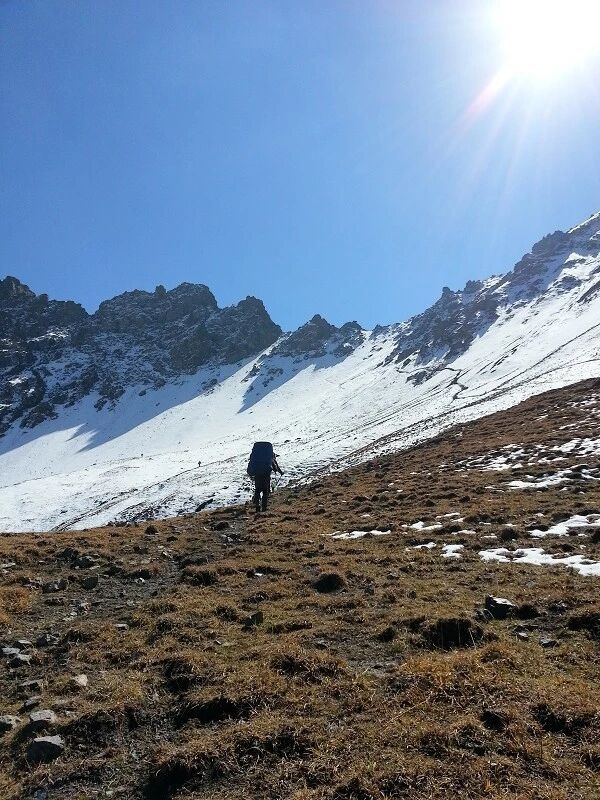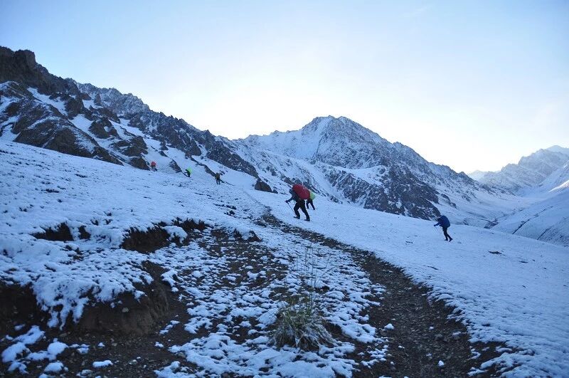 达坂底下到上到达坂重装大约得两个多小时,中间得休息两三次,我到达达坂上的时间是下午15点左右,不用担心被淘汰了,我们最慢的队员他们也基本都在15点半到达了达坂 ,我们算是全部完成了考核目标。