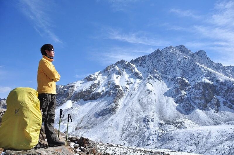 若是和我们一样的季节(国庆),建议一件软壳+羽绒服是最好的搭配,冲锋衣和抓绒就可以不带了,对了雨衣必须要带。我们这季节,我背的羽绒服、冲锋裤、冰爪、雪套、抓绒裤,我一次也没用上,当然是老天眷顾,天气很给力,有一套就够用了。