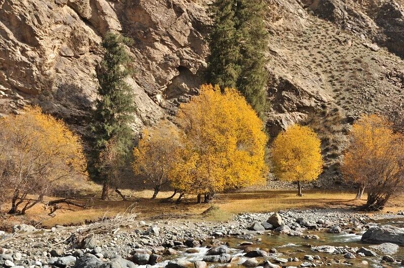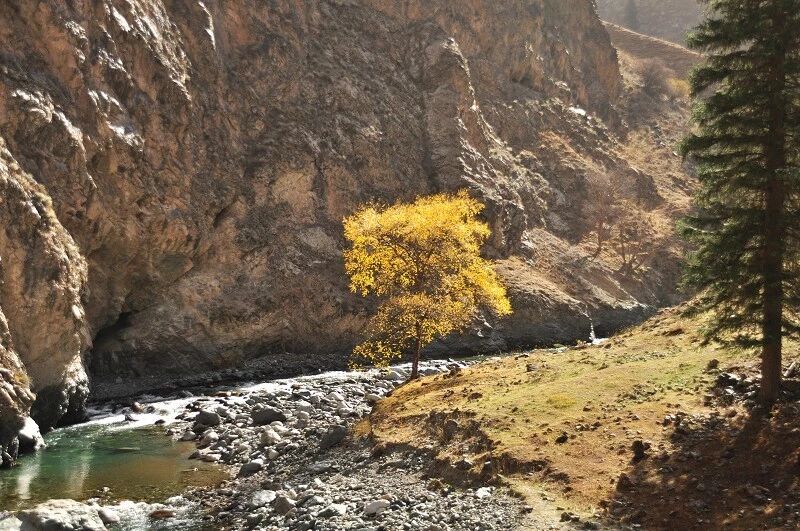 白杨河顺着河谷拐来拐去,一会就把我们逼到的岸边。