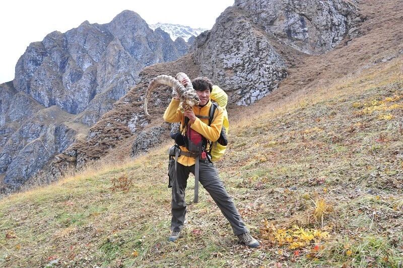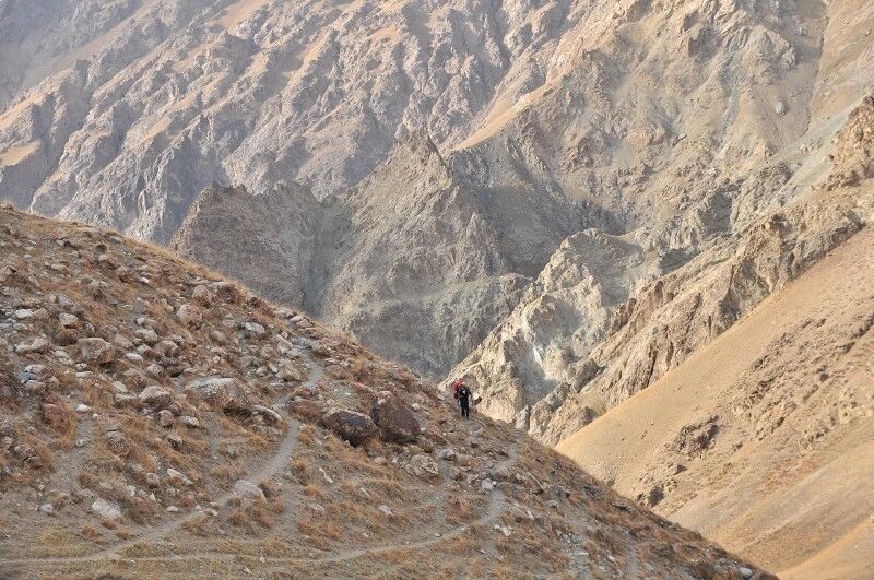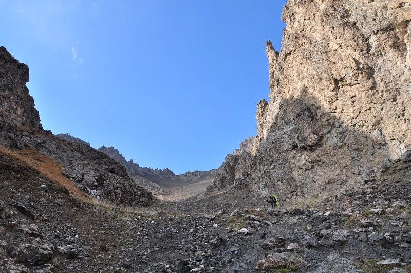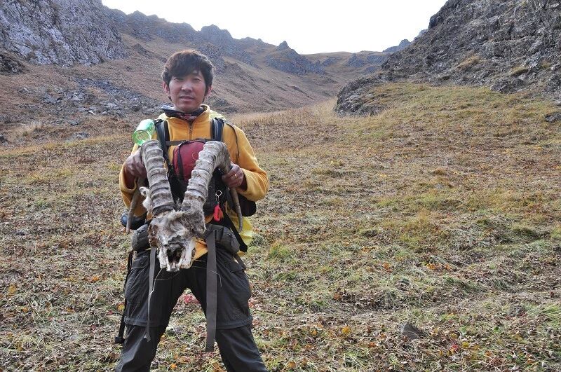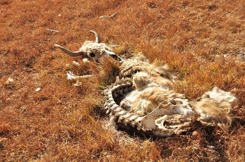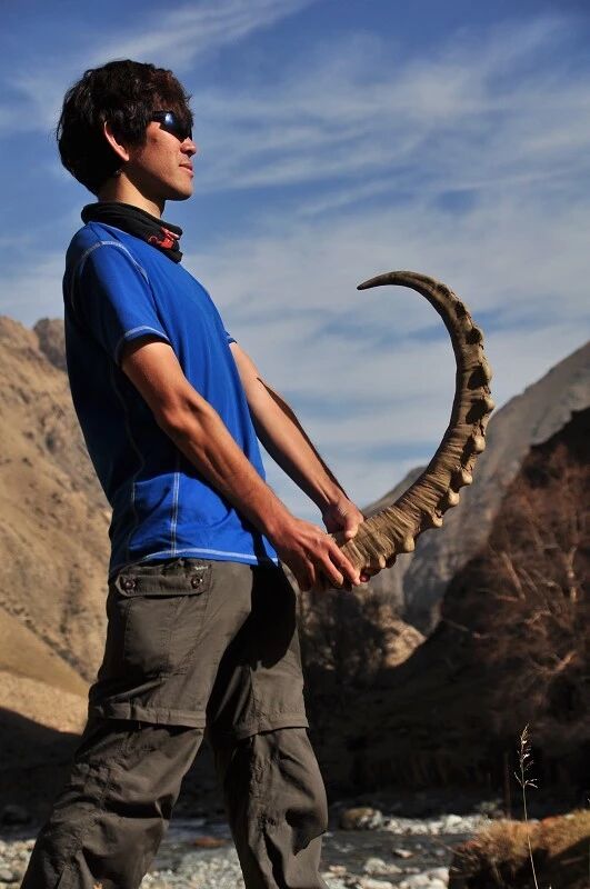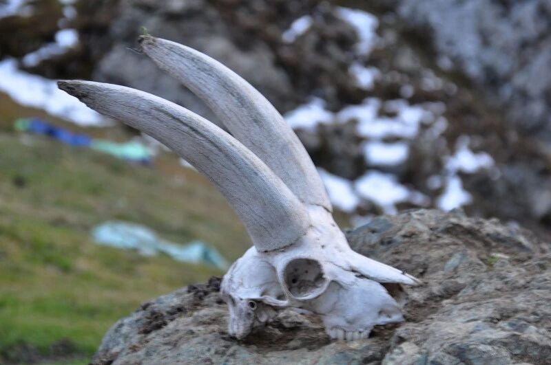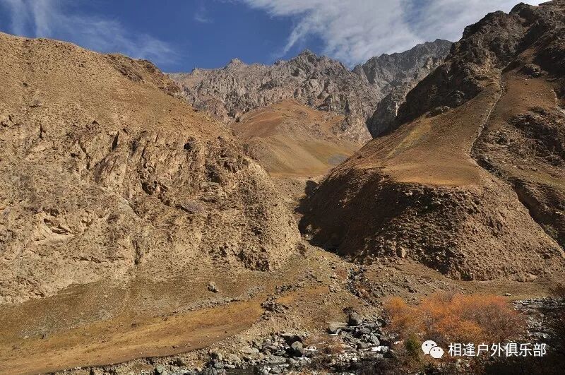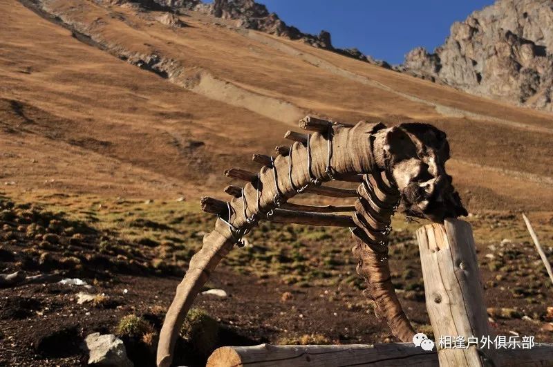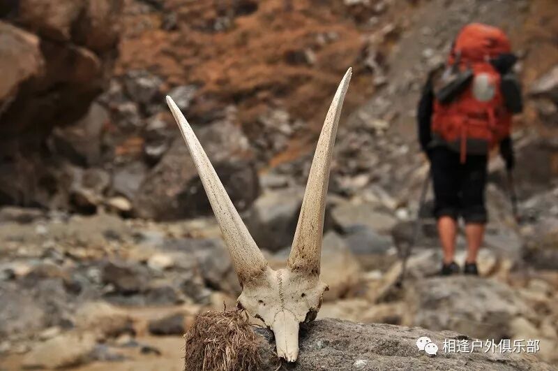 独自一个闯狼C线,后来一路一直跟我们同行。我虽然很佩服他的勇气,但是并不赞成他的做法,毕竟对于这样级别的线路,一个人实在是太危险了。还是那句话,“玩户外”不是“玩命 ”,安全还是放在第一位的,看着山谷中到处被野狼吃剩下的骨头、羊角、北山羊的残骸,我不知道他晚上一个人能不能睡得着。至少我是不会一个人探险穿越的!这是我玩户外的原则!