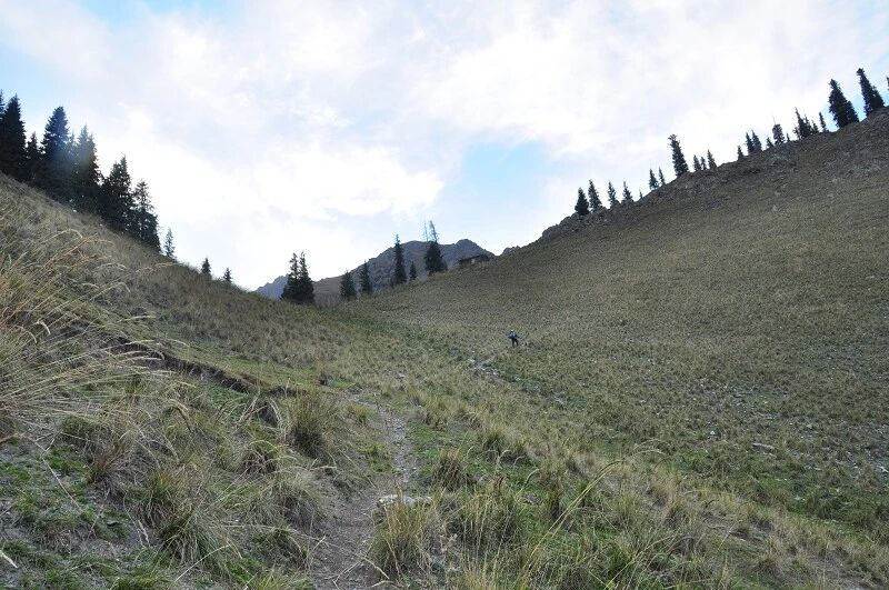 开始上升,19点05分,登上了乔楞格尔达坂 ,我们大约拔高260米,这是一个很小的达坂、、、过了达阪下来约10分钟过小溪即到我们今晚的营地