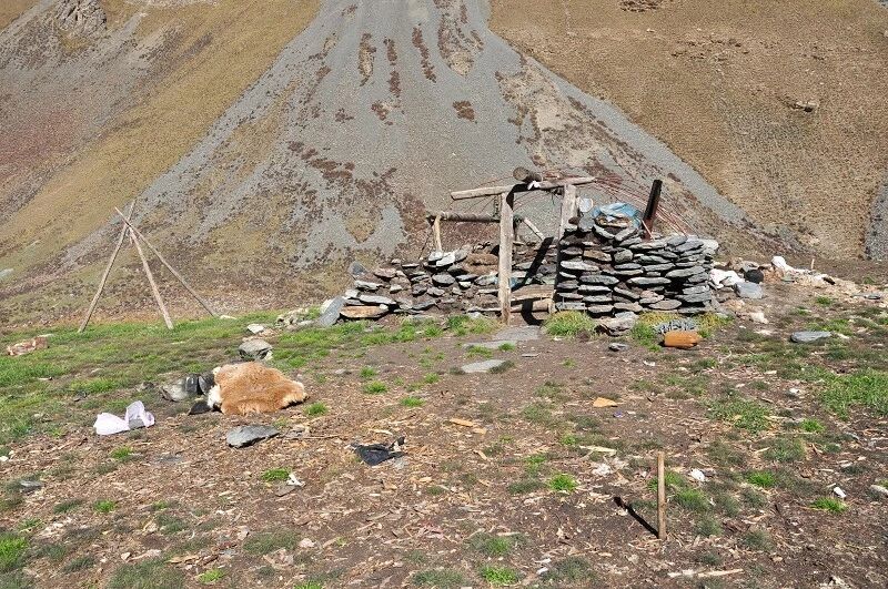 只有一间牧民房,里面住了少部分人。我们其余的在外扎帐,略微有点不平。海拔2480左右。
