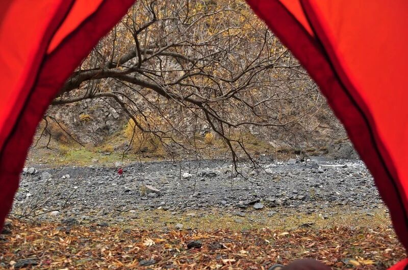 外面偶尔刮着风,打在帐篷上喷喷的响,声音极大;河水也哗哗的响,声音不小。打开手电,已是凌晨2点50分,从昨晚入睡到现在就没有真心睡着过。怎么也睡不实。想起今天就要出山了,估计也是兴奋的来。这么多天以来,手机一直是关机状态,与外界毫无联系,自己享受着大自然的美景,挑战者自己,实现着自己人生最大的爱好。可是每当夜晚躺在帐篷中,就能想起家人与朋友的牵挂、担心,未免自己太自私了。说真的,我想你们了。想到这,我的眼睛湿润了、、、