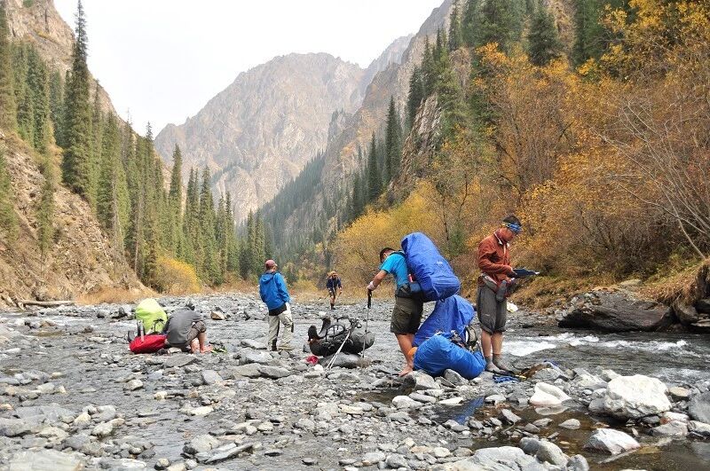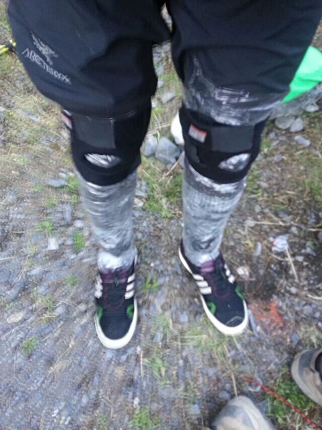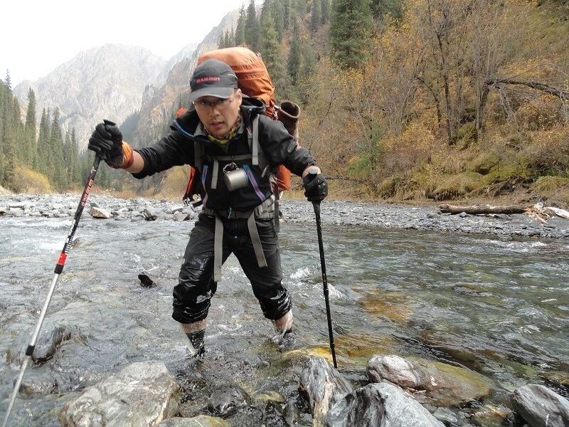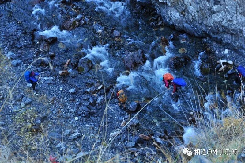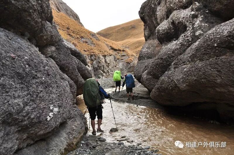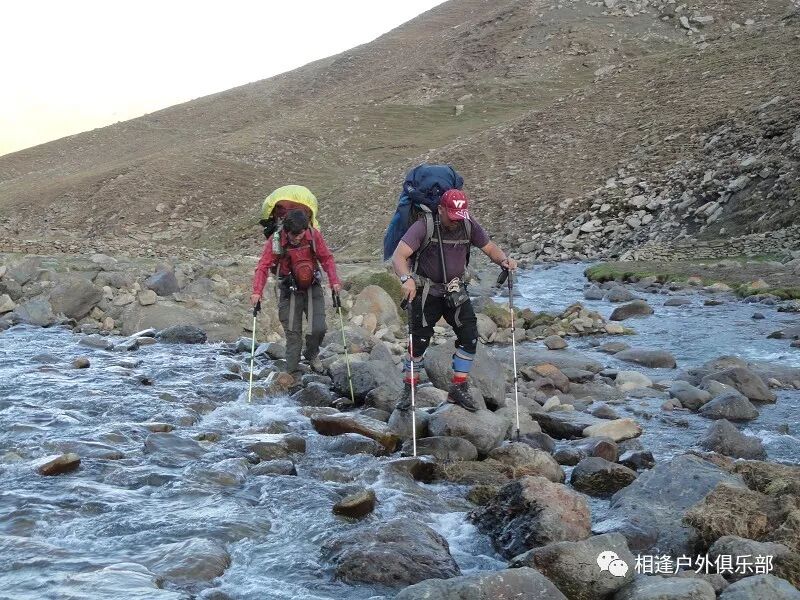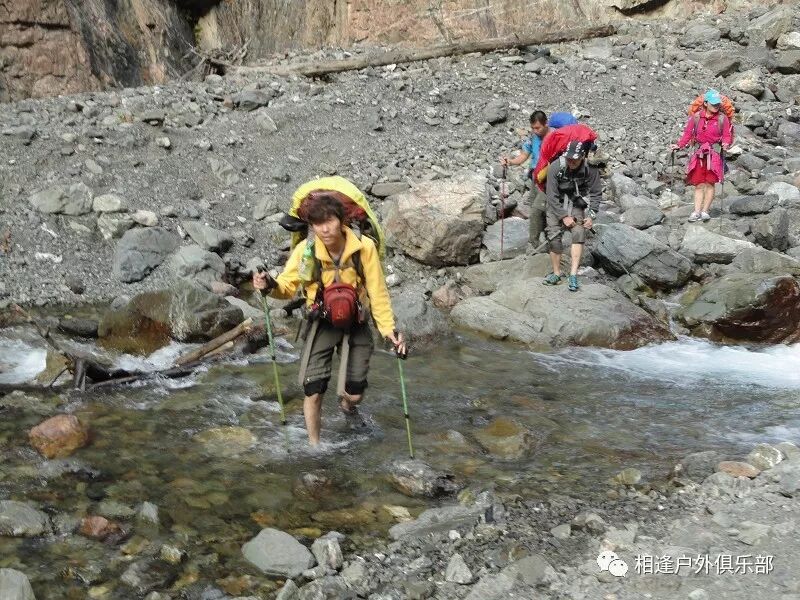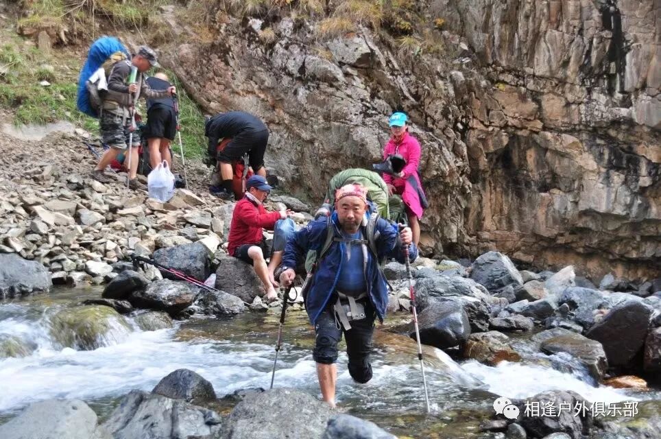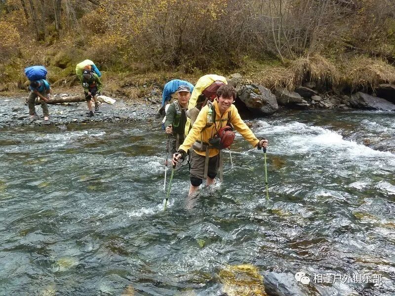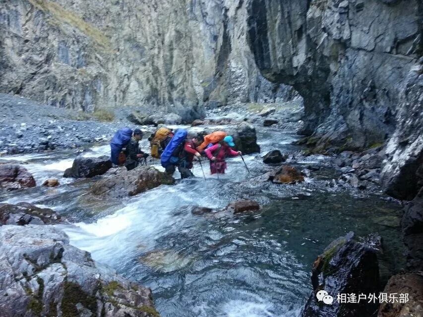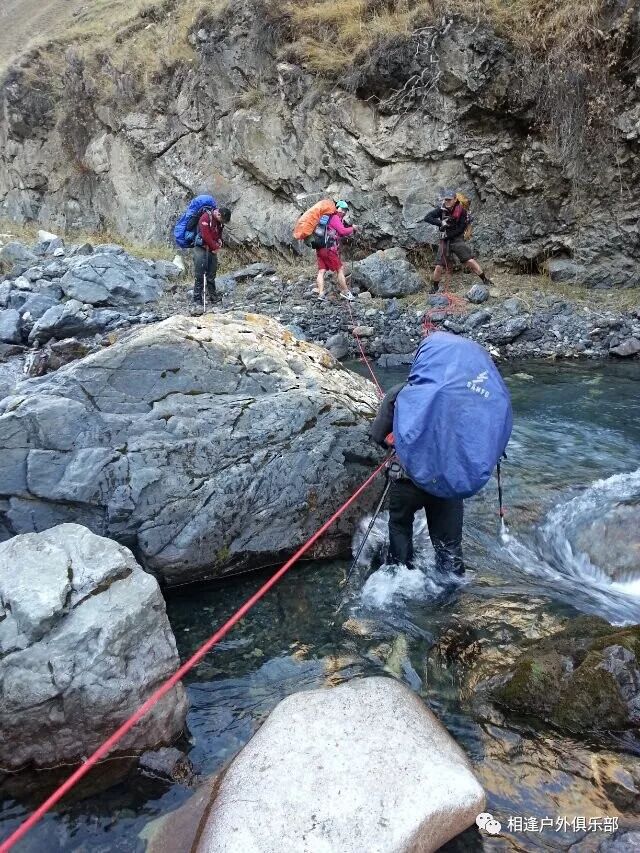 防水袜子最好买两双, 冲锋裤一定要过硬,注意使用保鲜膜要勒紧口,不要让水从上面灌入就行。 过河时要顺着水流,重心要稳,腿要用力,不要慌张,要带保护绳。当然我一直是遇过河光腿过的。