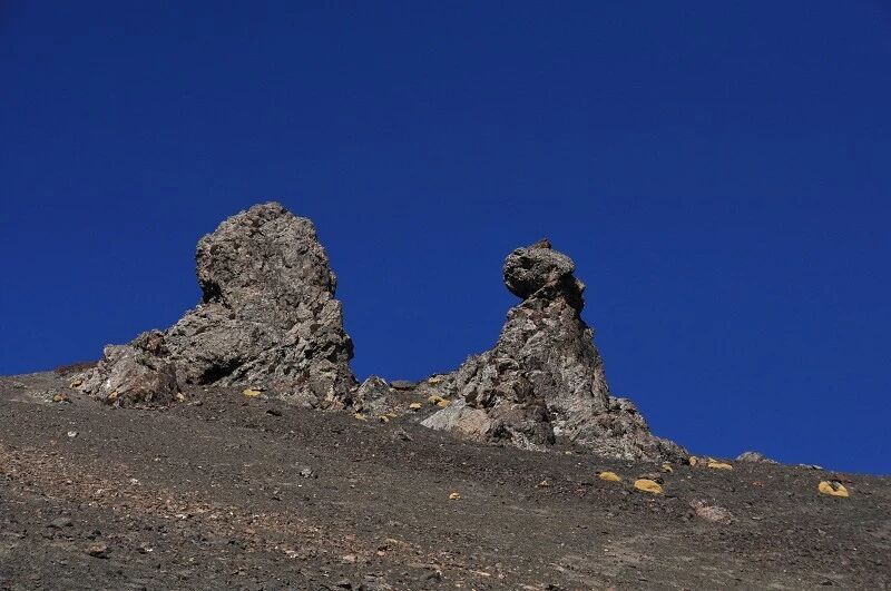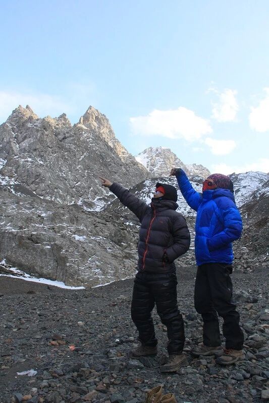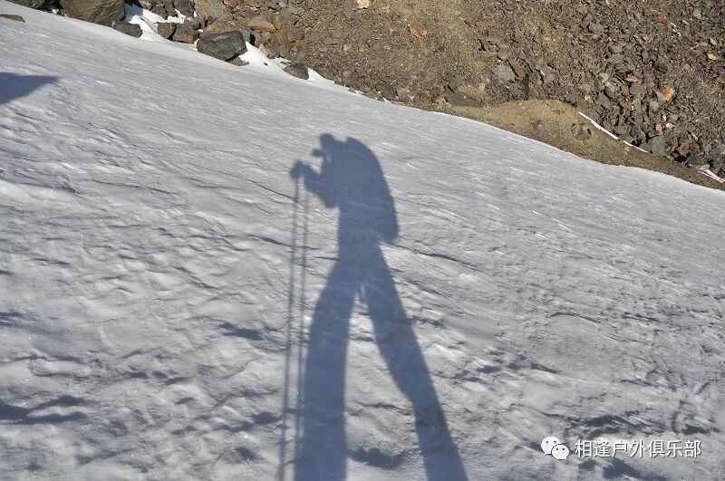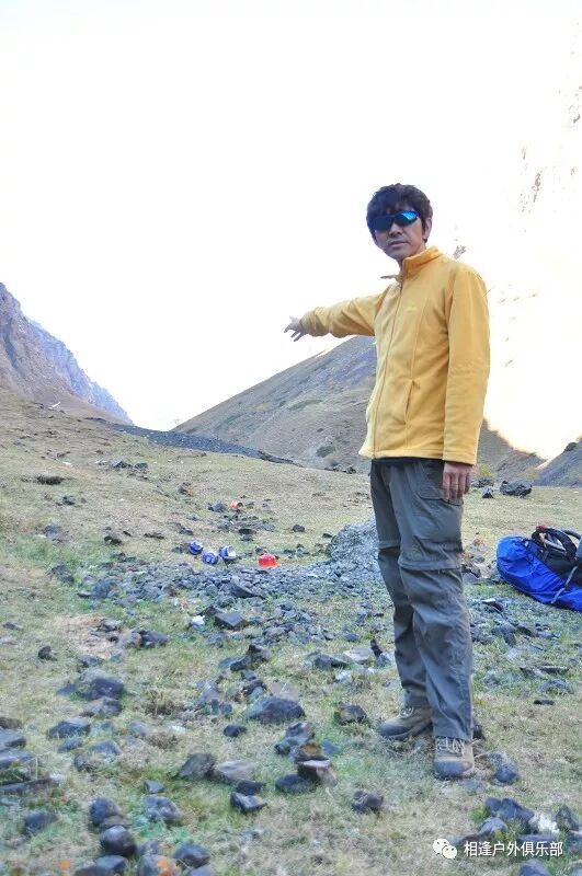 我们出发的时候是早上8点40分,回头向营地望了一眼,没想到不知谁扔了三张馕,一双冰爪,还有一根绳子,压在一个塑料袋下,看来减负的大有人在啊。