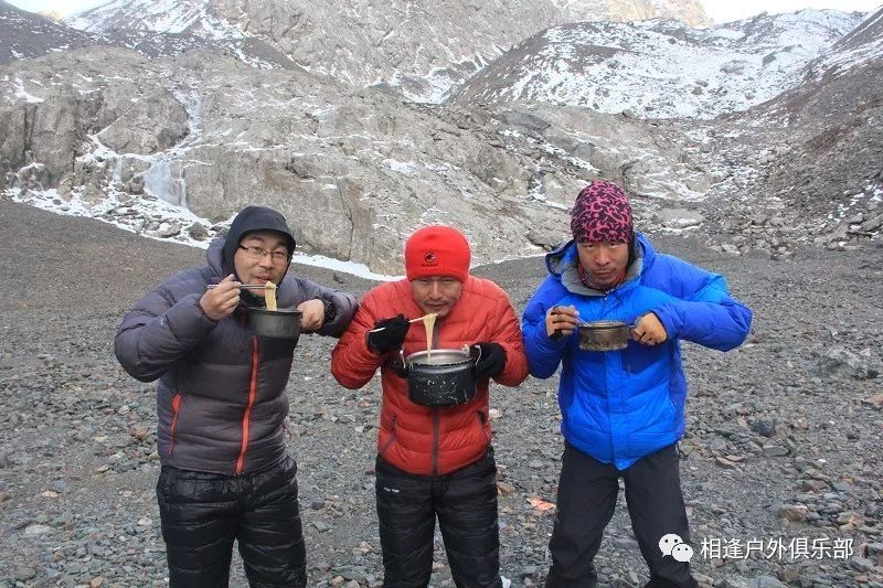 我们都在减负,风景大哥和景石大哥不知道谁说不按计划炒菜了,于是风景大哥把1.8斤的一桶食用油不准备带了。我把一袋500克的醋分给了风景大哥,我们3 人目前他的包是最轻的。我还把一袋400克的盐倒掉一半。没办法,谁让咱背的太重了。我背了3罐红牛,我分给他们一人一罐,说一会干掉。景石怎么也不要,说他不喝。那好吧,我背了俩,一会我解决。景石大哥把一根细绳给了向导。这些举动都是很正常的,多余的,用处不大的可以舍去。等你去了狼塔你就知道背的轻才是王道。因为我们发现我们的食谱还是存在问题的。不过也没有啥,只好适从啦。