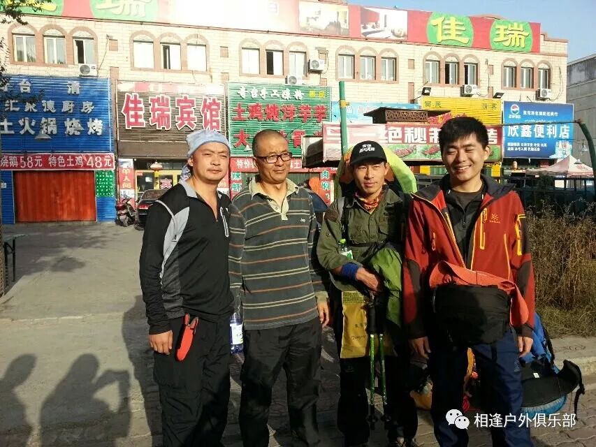 今天是我们计划好进山的日子,一大早起来我们十几个人都早早地吃完了早点,收拾好了行囊。天气是格外地睛朗,预示着我们的狼塔C+V穿越活动必将是一个顺利、圆满、美好的穿越之旅。当地知名的户外领队“树”也一早来到宾馆门口为我们送行,并祝我们一路平安顺利。