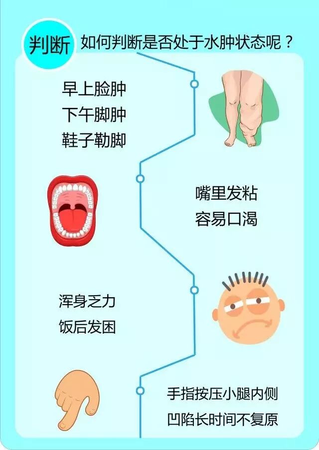 如果你突然发现体重没有任何增长的情况下,手指却变粗,脸变大,那么这很有可能是由于盐摄入过多造成身体水潴留。这种妨碍细胞正常代谢的情况一旦出现,水肿就一点都不奇怪了。
