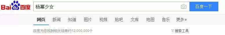 在百度搜索“杨幂 少女”的关键词,居然就有1200万个相关内容。