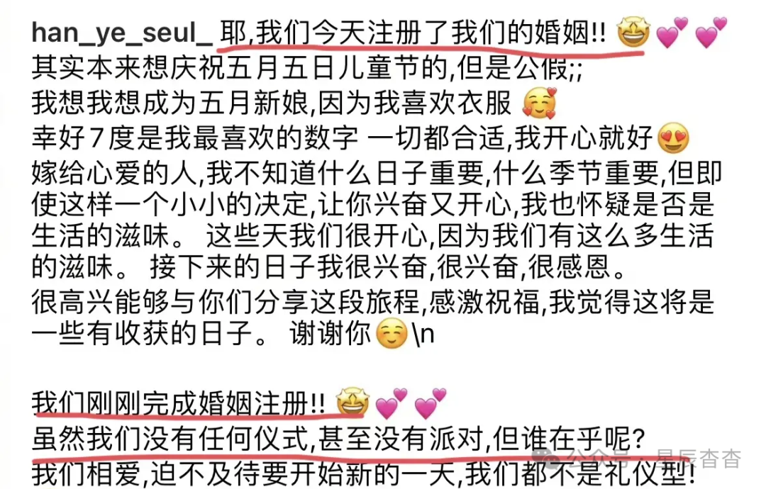 令人惊讶的是,韩艺瑟竟然连结婚仪式和派对都没有,可见她是真的不在乎这些所谓的"排场"。这让不少网友感叹:"这位姐姐真是太有个性了,不愧是国民女神!"有人甚至开玩笑说:"这位姐姐是不是太穷了,连结婚都不舍得办?"