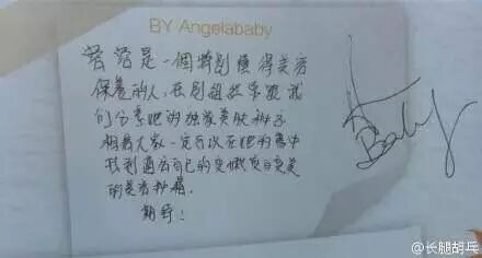 没有对比就没有差异性,大家可以去明星字迹大PK,有些明星写的字呀,看完后,太痛心!这篇文章中看看别的明星的字儿。我们在这里贴上几个↓