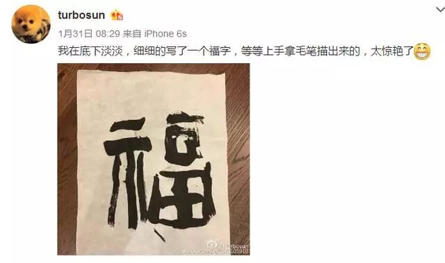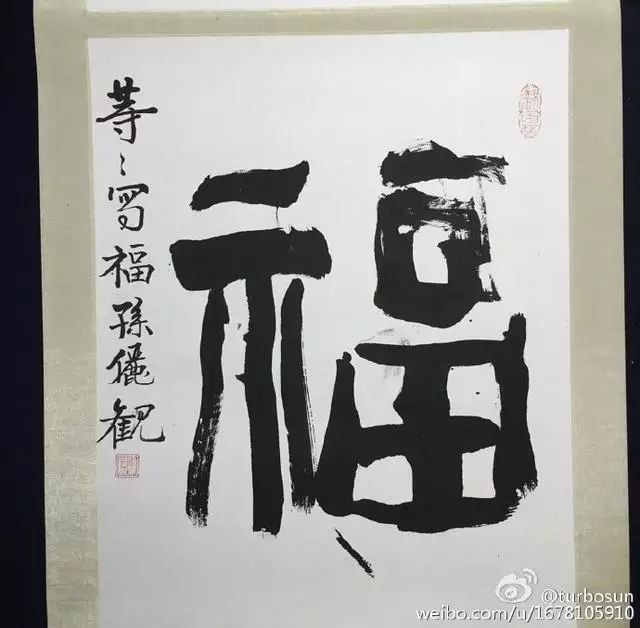 话说,等等小朋友出生于2011年,今年还没满6岁,先不说那副画了,光是这个“福”字写得太赞了吧!