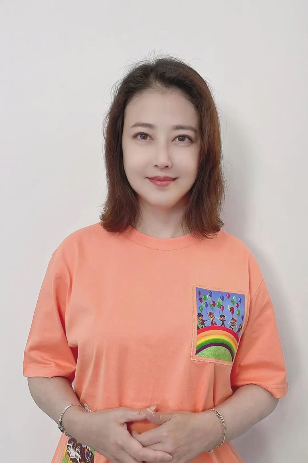 周海媚穿的这件橙色的短袖也是非常时尚。虽然衣服稍微显得有一点幼稚,但是穿她身上也是刚刚好。而且她的皮肤本身就比较的白嫩,穿这么亮色的衣服显得更加的有年轻人的味道。果然呀,年纪大了她的气质和眼光都变得更加高级。