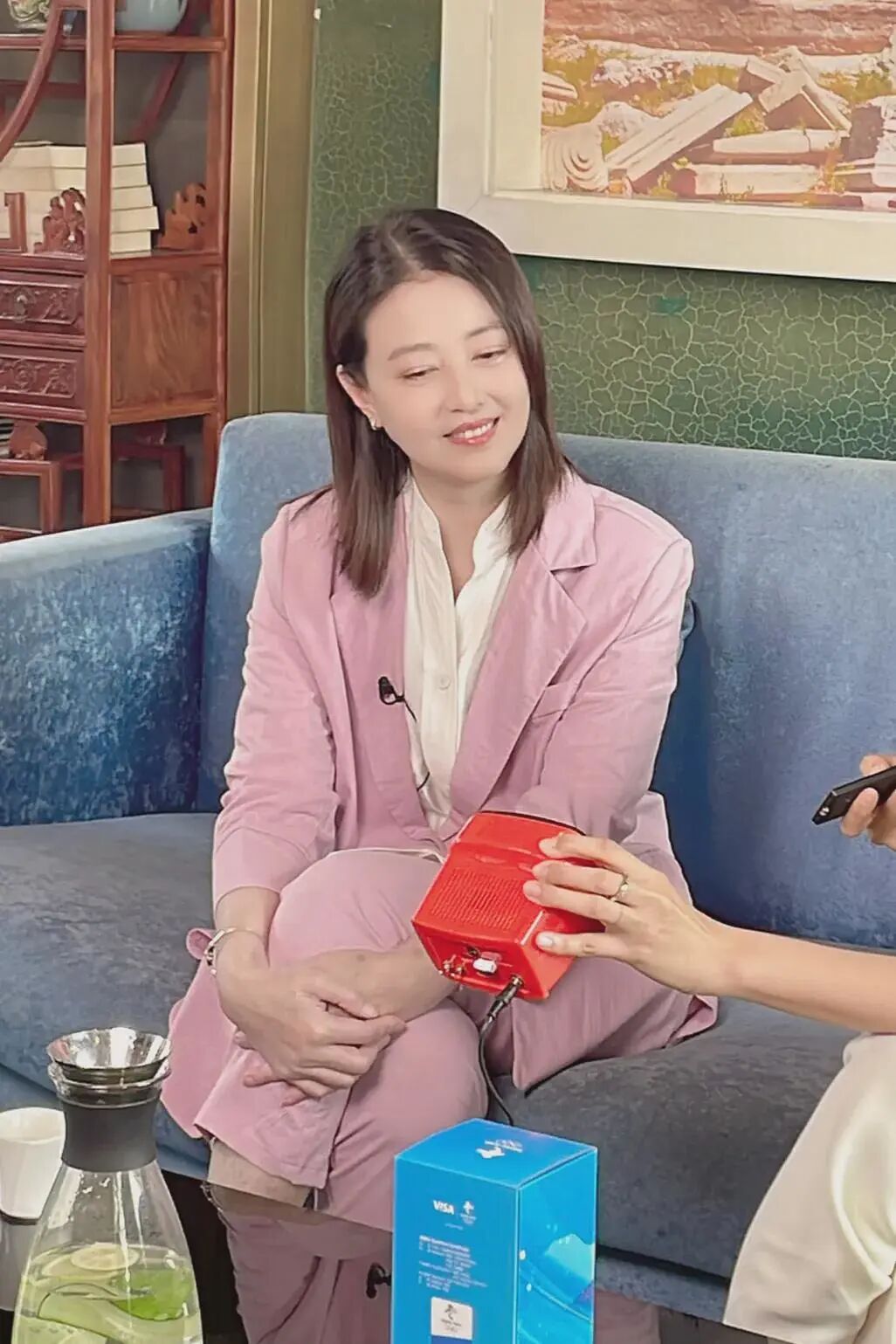 照片中周海媚穿的这一件粉色的西装也是超级有女人味,尤其是她笑起来的时候脸上也没有什么皱纹,所以从这个角度看过去的话,也是特别显年轻。果然呀,还是她一直能够保持这样高级的气质,就算是年纪大了也不会显得很老。穿上西装之后依旧是有女人的气质感。