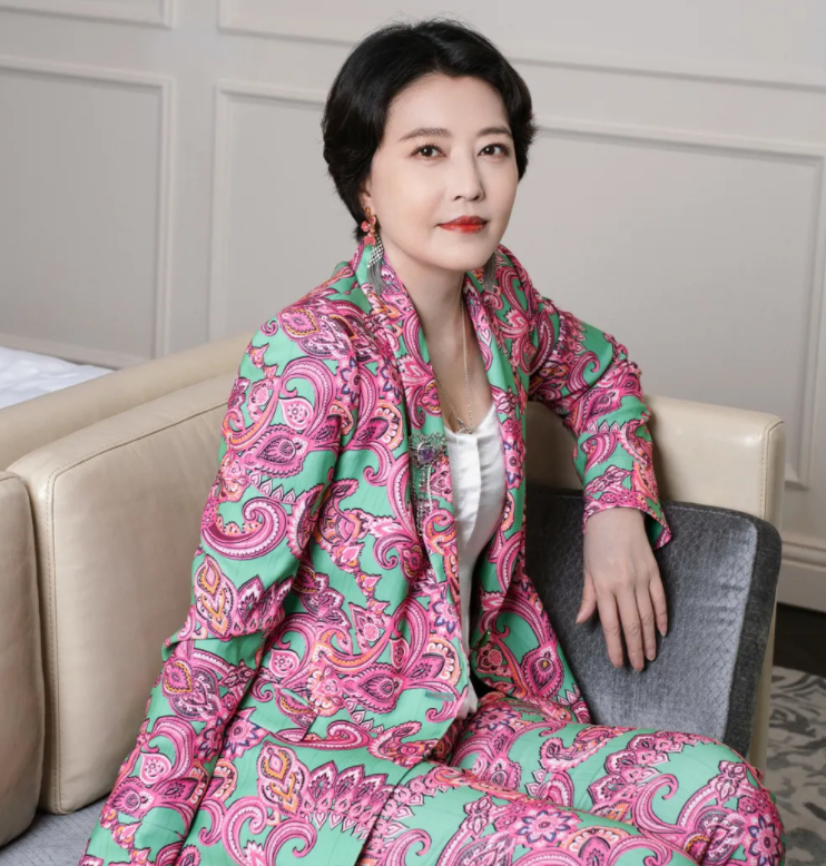 照片中周海媚穿的这一套花色的西装,真的是很土,但是她本人五官长得很端正,所以也不会影响她整体的气质。而且她自己剪了这个短发造型之后也不会显得很老,因为她本人比较的自信,所以坐的姿态也非常的高雅。