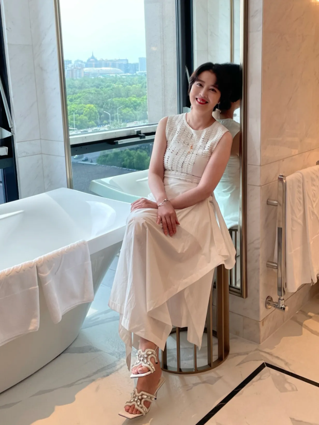 真的是没想到周海媚这把年纪了,穿上白裙之后也有这么好的气质。白色裙子穿在身上可以说是非常的高雅有气质,显得美若天仙,而且她笑着的样子真的是超级甜美,完全看不出她现在年龄已经这么大了呀。