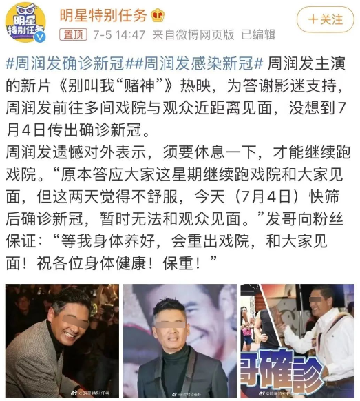 周润发主演的新片《别叫我“赌神”》热映,为答谢影迷支持,周润发前往多间戏院与观众近距离见面,没想到7月4日传出确诊新冠。