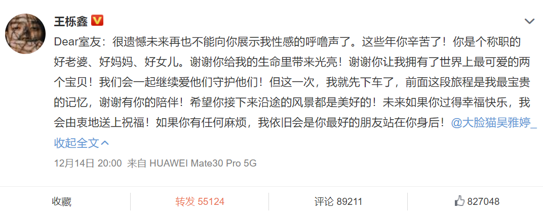 情感 | 王栎鑫离婚:分手要不要体面,这是我听过最好的答案 三峡晚报 内地男星 2020-12-18 19:29:03 888 创作不易,用心坚持,欢迎请BaGua喝几杯爱心咖啡!打赏并支持本文 打赏并删除本文 大家都在看宜昌要干这些大事!房产继承新规来了!马上实施!文章来源:程一(ID:djchengyi)时隔这么多天,没有看到微博热搜出现“爆”字了。 昨晚,王栎鑫离婚上了微博热搜而且喜提“爆”字。 让不少吃瓜群众纷纷惊讶地掉了下巴。毕竟印象中夫妻俩在镜头前一直是非常恩爱的状态,突然乍然分手,让人猝不及防。 他在微博上写到: 很遗憾未来再也不能向你展示我性感的呼噜声了。 希望你接下来沿途的风景都是美好的!未来如果你过得幸福快乐,我会由衷地送上祝福!如果你有任何麻烦,我依旧会是你最好的朋友站在你身后! 并在微博@吴雅婷。 而吴雅婷在微博也写到: 选择换一种方式相处,也许是我们最好的结束。各自安好,祝你幸福! 从他们的字里行间里可以看到他们对对方的祝福。而不是互相往对方泼脏水,诋毁对方。 体面的分手,为这段感情画上圆满的句号。电影《万物理论》的发布会上,霍金说他流泪了。因为这部电影是根据他和前妻的真实故事改编。 在1963年的新年派对上,霍金和前妻简一见钟情。 她爱他聪明的头脑、幽默的谈吐,他喜欢她温柔的脾性、明媚的笑容。 相恋后的日子也相当甜蜜,她带他领略人文艺术,给他充满诗意的浪漫。他带她畅游宇宙,体会时间旅行的奥妙。 虽然他们的兴趣爱好,观念都不同。可他们仍然在彼此身上看到了另一个世界。 可好景不长,霍金查出患有渐冻症,被医生告知只有两年的生命。 简得知后,不仅没放弃,还不顾全家人的反对,立刻与他举行了婚礼。 然而,相爱容易,相守难。两人耳鬓厮磨,很快就被柴米油盐酱醋茶的日子撕得粉碎。 为了丈夫,简不得不放弃热爱的事业,照顾他的饮食起居,如一个永动机那样丝毫不敢懈怠。 因为她知道,只有这样,才能给他续命。 没了事业,又要照顾3个年幼的孩子,还要承受随时失去爱人的痛苦。简仿佛坠入黑洞,想逃离,却找不到出口。 而那时的霍金,却因为沉迷于物理的世界,常常一周都很难跟妻子讲上一句话。更别说给予体贴和关心了。 渐渐地,爱情消耗殆尽,维系彼此关系的仅仅是责任而已。 体面分手,是放过对方,也是成全自己。 终于,二十多年后,他们决定给彼此自由。 没有争吵、没有哭诉,分手时刻,正如影片中演绎的那样,简动情地说: 我爱过你,我尽力了。 霍金也表示遗憾: 我有全世界最聪明的大脑,却不能给你幸福和美满。 体面分手才是对彼此最大的尊重,而保有尊重,才不枉相爱一场。 分手多年后,虽然爱情已逝,他们之间却仍留有情谊和尊重。 简会为霍金的成功喝彩,霍金也会为简重获幸福送上满满的祝福。 从王栎鑫和吴雅婷,霍金和简身上,我们可以看到: 一别两宽,各生欢喜。 既道出了曾经的深情,也可以感受到他潇洒地离开。过去的,终将要过去,谁也没有说抱歉。 只是希望分开的时候,彼此能够有仪式感,更加体面一些。 这样若干年后回想起来的时候,也不至于久久难以忘怀。 时间是最好的良药,过去的争吵、遗憾,都会在时间的沉淀中随风而去,成为你人生经历中的印记。 假如在感情中被伤害被背叛,也尝试用温柔的心谅解你曾经深爱的人,这也是一种成长。 因此,如果不能做到有情人终成眷属,那就好聚好散。别撕破脸,为自己,也为对方留点尊严和体面。文章来源:程一(ID:djchengyi),声音是有温度的,夜晚的声音会发光。新书《不负过往,不惧孤独》正在当当热卖,你想要的答案,时光都会给你。程一用温暖治愈的嗓音和走心的文字,为全网超过3000万听众传播正能量,节目播放量超60亿次。微博:@DJ程一。来源/三峡晚报综合程一(ID:djchengyi)编辑/郑支良 主编/陈冬冬 终审/方正实习编辑/赵凌锋 李英鸣 李梦德 王思阳 创作不易,用心坚持,欢迎请BaGua喝几杯爱心咖啡!打赏并支持本文 打赏并删除本文 感谢您的支持鼓励,我会继续努力的!文章地址:用户邮箱:打赏金额:USDT 请输入数字点击”去打赏“,即可进行打赏支持本文章哦 王栎鑫 About the Author 三峡晚报 功能介绍:陪你看世界,精彩每一天 官方认证:湖北日报传媒集团三峡分社 Related Posts 噩耗!最美“杨贵妃”周洁去世 2021-10-03 14:35:24 韩红否认 2021-07-27 14:58:26 情感 | 王栎鑫离婚:分手要不要体面,这是我听过最好的答案 2020-12-18 19:29:03 张韶涵要来宜昌了!就在明天… 2020-12-18 19:29:03 张丰毅首谈不参加儿子婚礼原因!网友笑喷:沙书记,以后谁还敢请你 2017-05-06 16:17:25 发表评论
