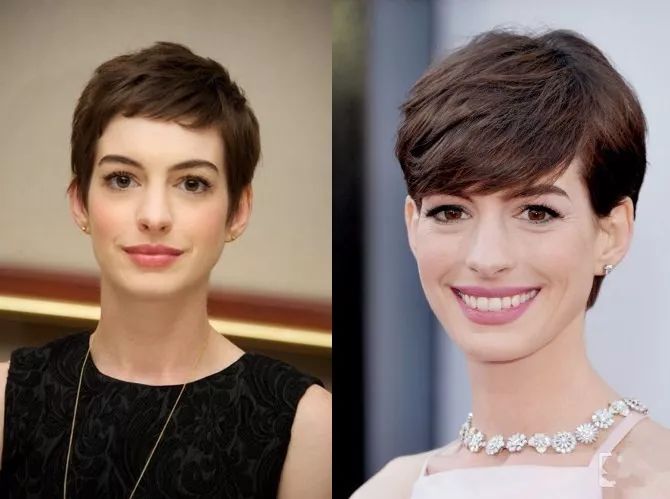 再有就是之前说过的大五官面相,海瑟薇就是超级典型的一位。如果刘海过长,没有给整张脸充分的“留白”,那么就会显得相当局促拥挤,超级影响颜值。