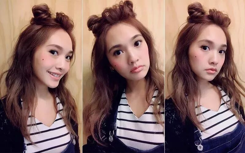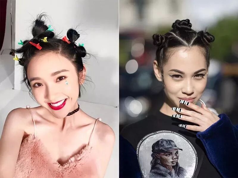 中分型双丸子是最好打造的,显boring的女生也可以像阚清子一样用锯齿分割显独特。