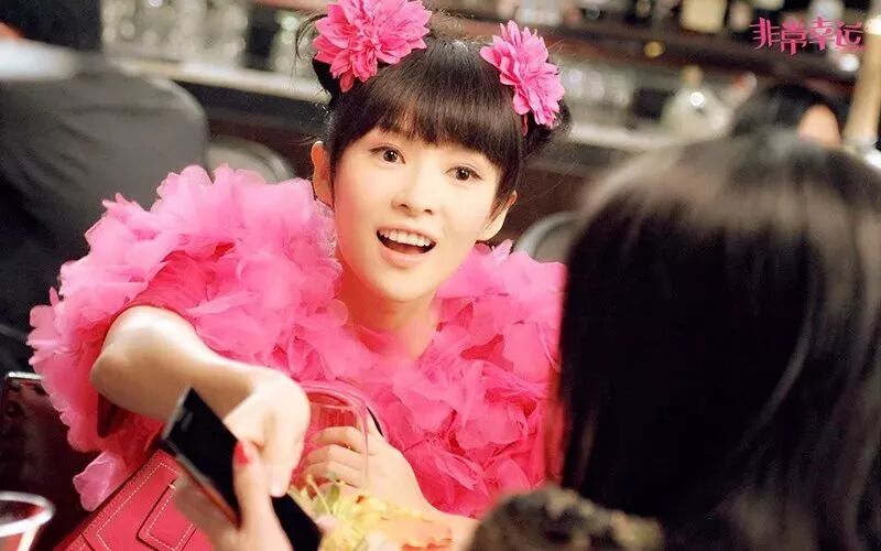 章子怡在电影《非常幸运》中的造型时尚又不乏搞笑,扎着哪吒头还配上花朵装饰,完美符合剧中天马行空的漫画少女形象!