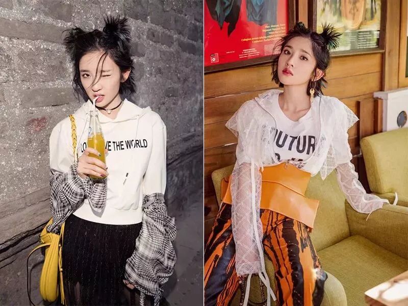 欧阳娜娜和关晓彤用少女系妆容搭配凌乱小碎发的哪吒头,可以说是青春无敌了。