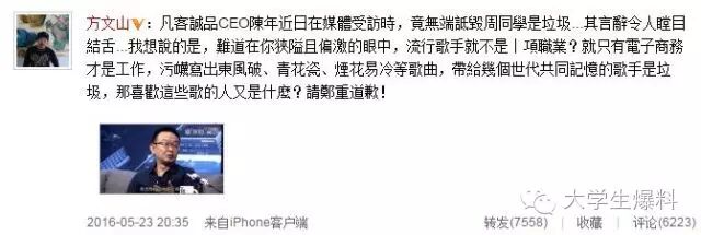 【电影音乐】周杰伦被骂垃圾,方文山怎么会比昆凌更着急! 港台男星 2016-05-26 23:34:27 371 创作不易,用心坚持,欢迎请BaGua喝几杯爱心咖啡!打赏并支持本文 打赏并删除本文 关注我,你的眼睛会怀孕小爆说“每颗心上某一个地方,总有个记忆挥不散”“纵然青史已经成灰,我爱不灭”“穿梭时间的画面的钟,从反方向开始移动,回到当初爱你的时空 ”这些都是青春的回忆,这些都有我们的生活与梦想的痕迹!近日,某服装销售网站的负责人陈年在参加一档节目的时候,竟然直接表示自己觉得周杰伦就是垃圾。到底发生了什么,让陈年在节目上这样直接攻击周杰伦呢?在节目中,陈年表示自己很喜欢内地诗人穆旦,还表示自己近些年想要做和穆旦相关的产品,所以,当他找到穆旦的次子,并且收到对方回复的时候很激动。主持人插话说,这种激动的感觉应该就像是大家看到了周杰伦。没想到陈年却直接说,穆旦可以甩周杰伦10万条街,他觉得和穆旦相比,周杰伦就是垃圾。此番言论曝光后,瞬间引爆网友关注热议。方文山通过微博回应周杰伦被骂垃圾,怒斥陈年狭隘偏激,请道歉!方文山针对陈年的言论,在微博留言称:“陈年近日在媒体受访时,竟无端诋毁周同学是垃圾。其言辞令人瞠目结舌。我想说的是,难道在你狭隘且偏激的眼中,流行歌手就不是一项职业?就只有电子商务才是工作,污蔑写出东风破、青花瓷、烟花易冷等歌曲,带给几个世代共同记忆的歌手是垃圾,那喜欢这些歌的人又是什么?请郑重道歉!”网友也纷纷留言表示支持方文山,力挺周杰伦并集体要求陈年道歉,称:“必须道歉,再有思想和文化也要学会尊重别人。”“请道歉。可以不喜欢但请别污蔑。”小爆个人观点,杰伦是我们时代的青春,就算是长大了,还是有成长的痕迹与气息。现在想起那时候的开心与不开心,戴着耳塞都是他的声音,有他的陪伴!周杰伦说过,朋友,要交一辈子。为了朋友,我可以付出,只要对他们有帮助。如果我的成功可以为朋友带来一些帮助,我不会吝啬的。因为我也是从默默无名一路走来,才能拥有今天这样的成就。对我来说,朋友是要交一辈子的。想必方文山也是这样子认为的,所以他们的友谊不会随着时间的消逝而渐行渐远。没有联系不代表不想念,朋友就是在你需要的时候,为你撑起一把伞,遮挡路上的障碍。长发的我们还没有学会摆酷百分之一百的欣赏我们同进步、共欢颜本文部分内容来源于网络,部分文字为小爆原创,如有侵权,请作者联系删除。大学生爆料微信:limmai007爆料 吐槽 分享 交友长按二维码关注喜欢的话就点个赞再走呗~点击“阅读原文”,发帖互动有惊喜哦~ 创作不易,用心坚持,欢迎请BaGua喝几杯爱心咖啡!打赏并支持本文 打赏并删除本文 感谢您的支持鼓励,我会继续努力的!文章地址:用户邮箱:打赏金额:USDT 请输入数字点击”去打赏“,即可进行打赏支持本文章哦 方文山 发表评论