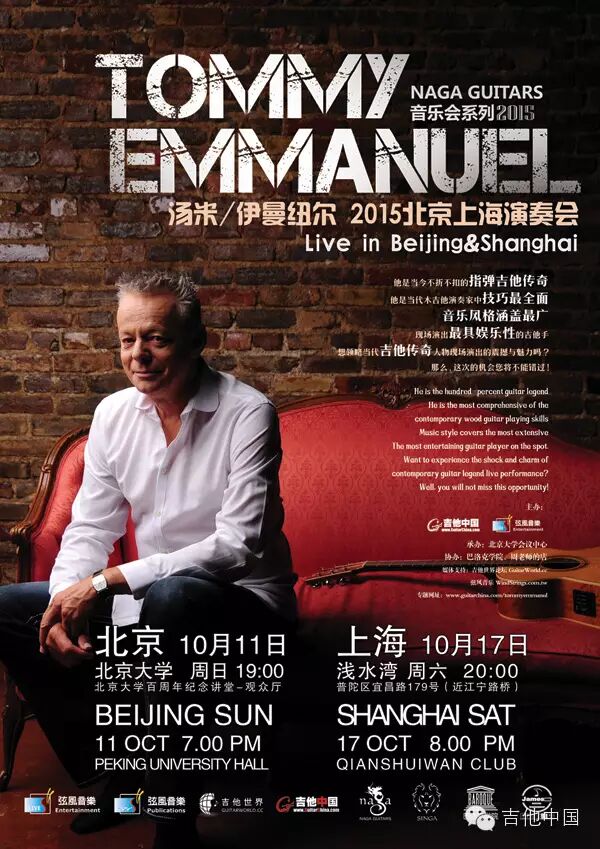 Tommy Emmanuel这个名字几乎可以代表FingerStyle(指弹),他的吉他弹奏职业生涯已经跨越40多年,目前仍不断与世界各地的顶尖乐手合作,在全世界已经拥有无数忠实的乐迷,在澳大利亚家喻户晓。Tommy过去曾多次被权威媒体《滚石音乐杂志》票选为世界最佳吉他手之一,也获得过第49届格莱美奖“最佳乡村音乐演奏奖”(Best Country Instrumental Performance)提名,并在2008年被知名吉他杂志《Guitar Player》票选为“世界最佳原声吉他手”。他表演时的幽默以及其音乐魅力总是让人印象深刻,并且能够深深地打动听众。