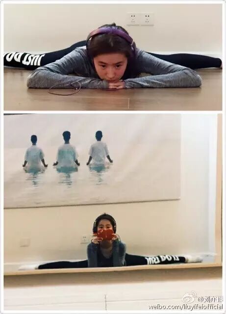 之前在微博晒了一张练功的照片,照片中刘亦菲纯素颜一字马劈叉。年近三十的刘亦菲还和十多岁少女时一般无二。能保持那么好的体态,和她常年练舞坚持练习基本功有关。