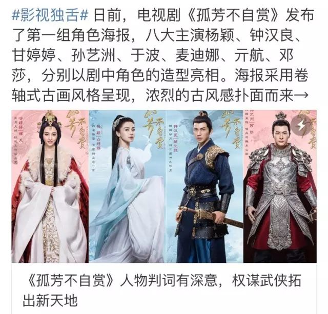 看看《孤芳不自赏》出炉的号称充满寓意的人物海报,听起来逼格满满呢。