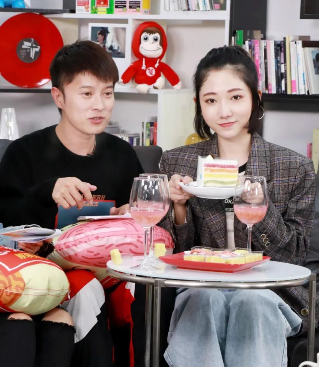 每一次翻唱都能唱出自己味道的洪辰,当晚更是喜提“翻唱pk战”,与主持人“斗智斗勇”,从陈奕迅唱到周杰伦、从孙燕姿嗨到王菲,优质的嗓音听得粉丝如痴如醉,也让洪辰顺利解锁了深夜访谈压箱宝——绝美夜宵。节目组精心为洪辰调制了鸡尾酒,更献上了生日蛋糕,提前祝贺她生日快乐,这波暖心操作也让洪辰连连感谢,在线公开自己的生日愿望,表示想开一家民宿,有猫有狗,自由而浪漫!
