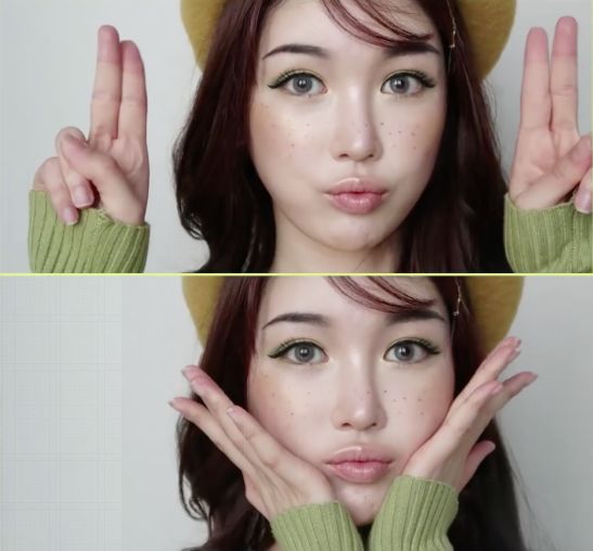 韩国博主Daiya的猕猴桃妆容是真实的春天果汁妆了。