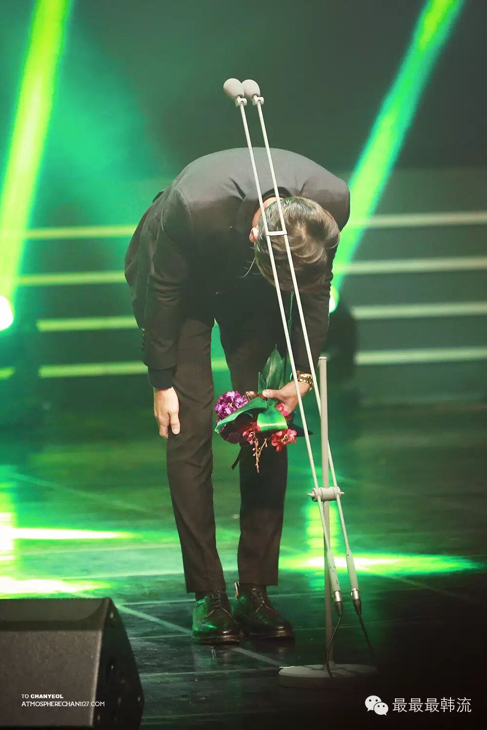 的确,朴灿烈在领奖台上会90°鞠躬↓