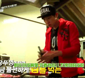 朴灿烈是个很会做饭的男孩子,之前在综艺节目中已经有了表现↓