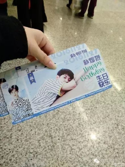 朴灿烈的粉丝们在很早之前就已经做起了声势浩大的应援,比如机票背面↓