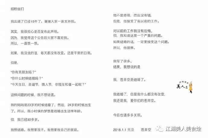 我写了很多,最后我想说的是,我,苍井空,结婚了。