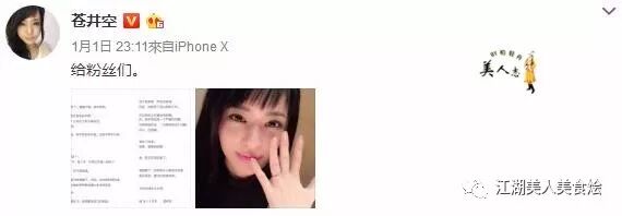 大概意思是“新年快乐!你还是我们爱的那个苍老师,一切都没有变,这无关风月。”
