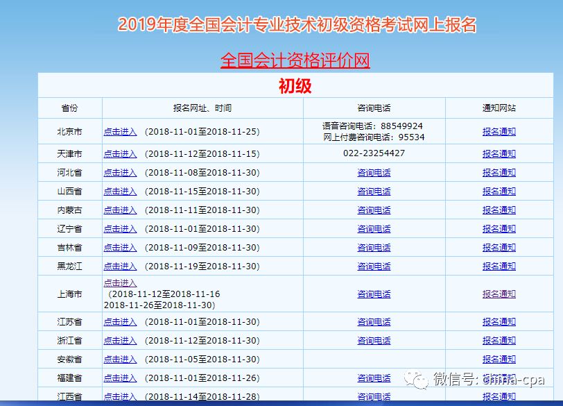 会计初级职称报名时间:上海第一阶段报名自2018年11月12日10:00开始至11月16日24:00结束,第二阶段报名自2018年11月26日10:00开始至11月30日24:00结束。(内地省份时间参考各省财政厅局网站,基本上是11月底前结束,早的26日就结束了)。