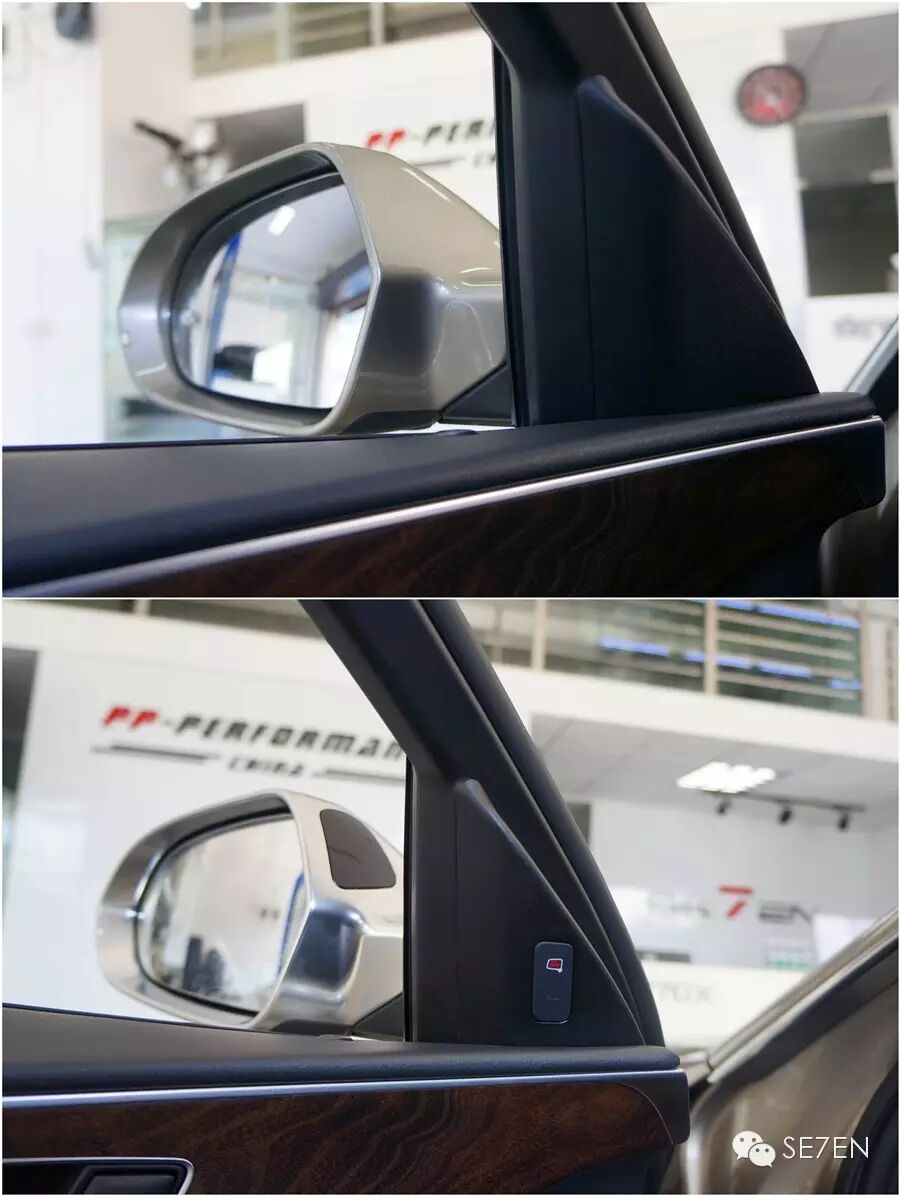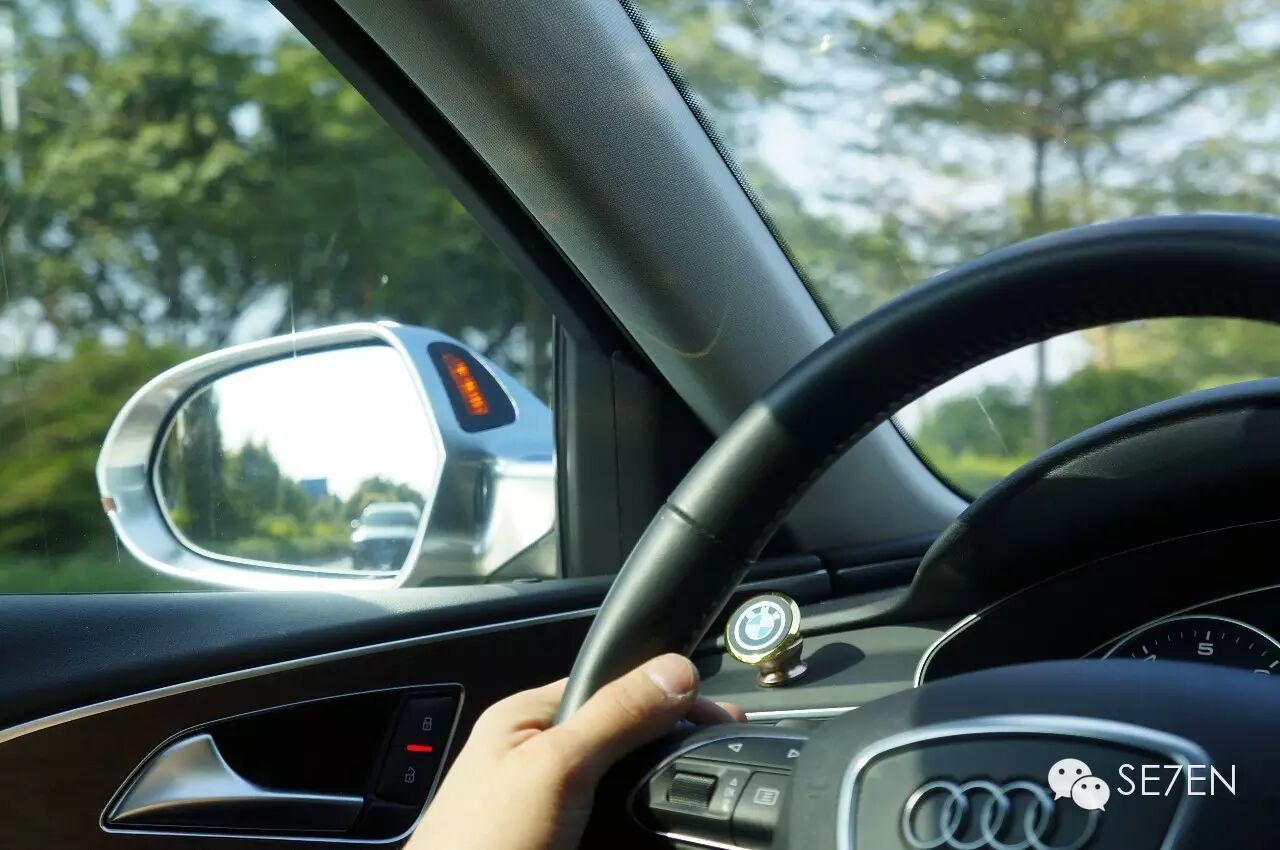 变道辅助系统加装后,后视镜壳上特有的信号灯。