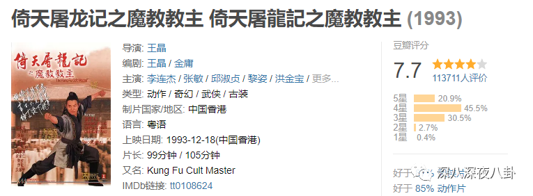 说到这,又不得不再次cue93版《倚天屠龙记》了,当年作为导演和编剧的王晶,选角一流,演员卡司阵容超强大,李连杰、洪金宝、吴镇宇、张敏、邱淑贞、黎姿等,这部电影几乎集齐了90年代初的港片市场最受欢迎的人