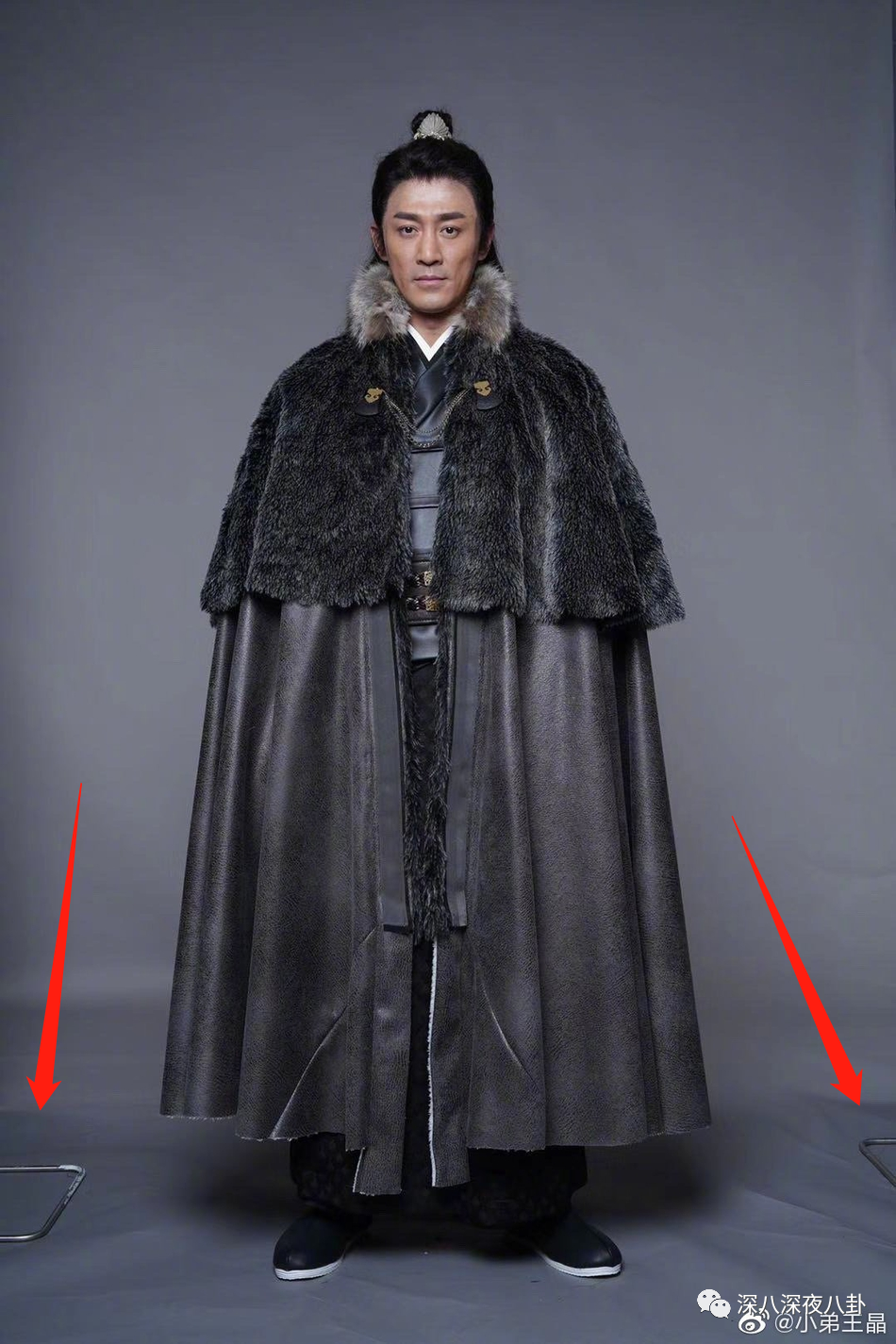 林峰的两张图中,还有拍摄定妆照的现场拍摄设备架子露在两边,一看就是完全没P过,生到不能再生的生图了
