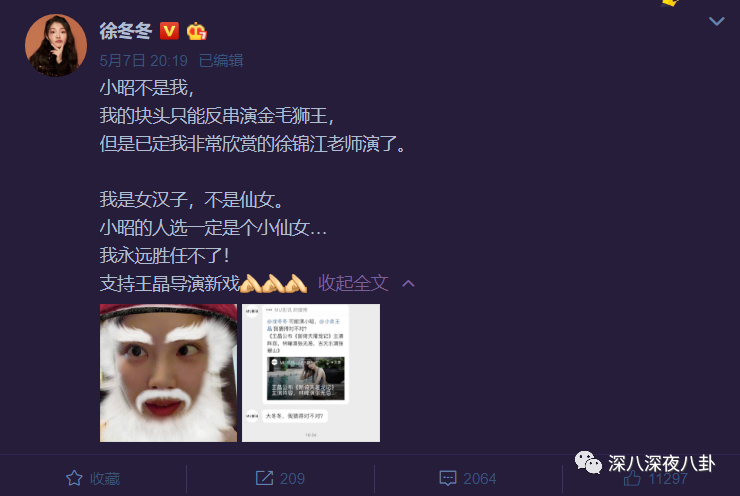 结果,徐冬冬在线辟谣,还调侃自己只能反串演金毛狮王,小姐姐还挺逗哈哈哈哈哈