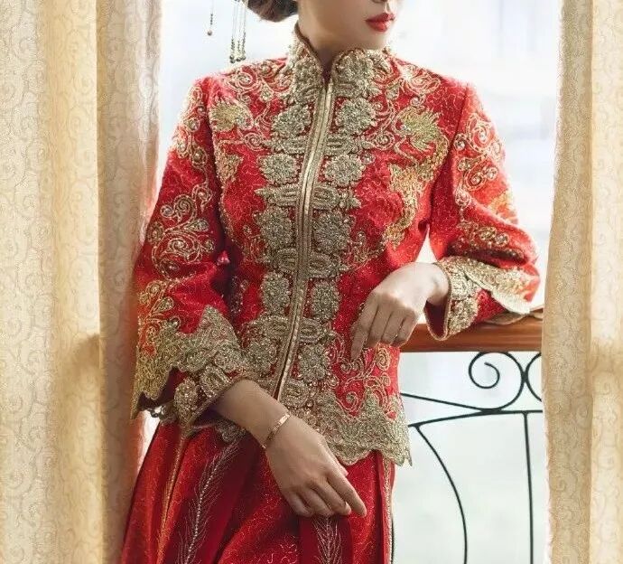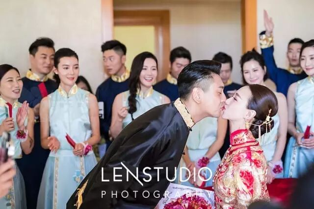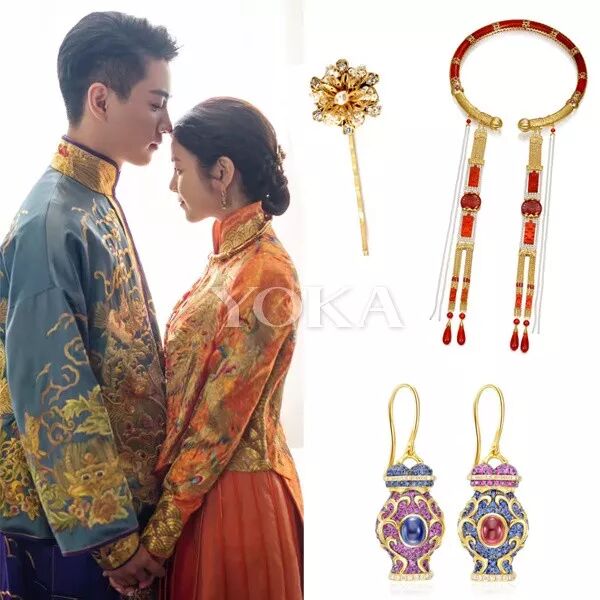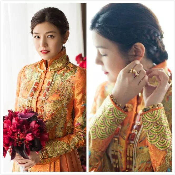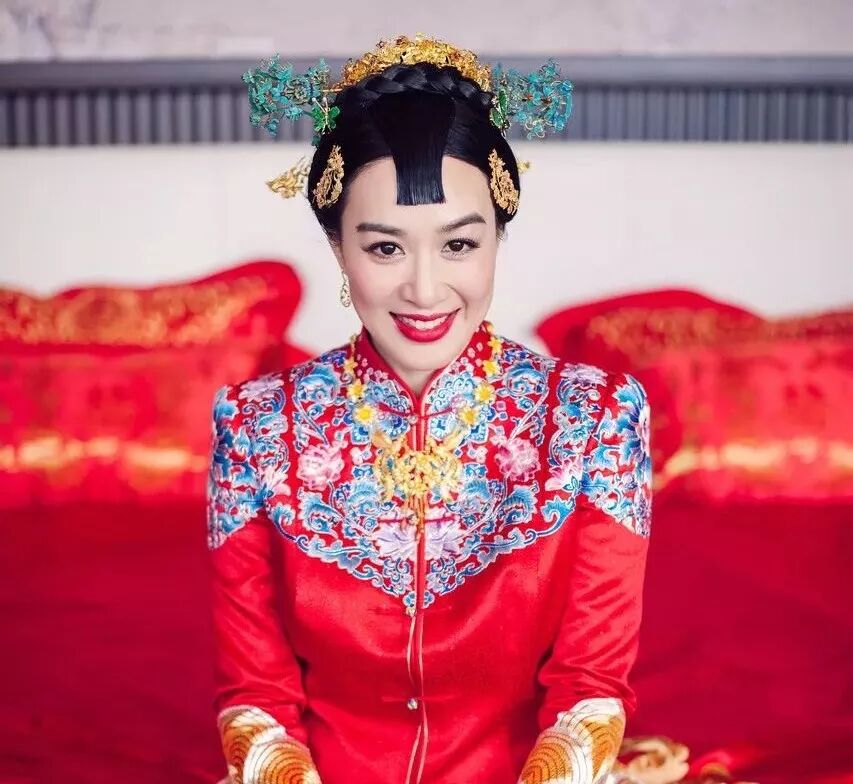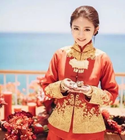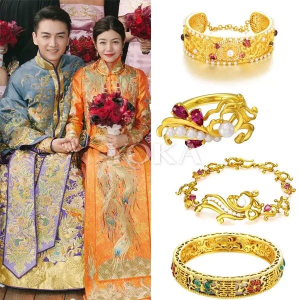 很多女明星在结婚时是着中式嫁衣出门,这时候黄金配饰自然少不了,比如陈妍希