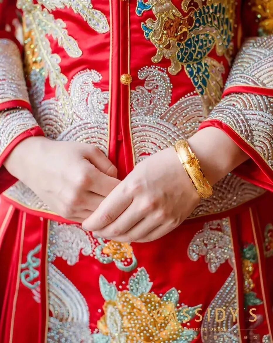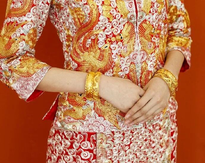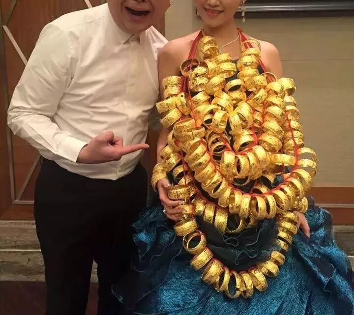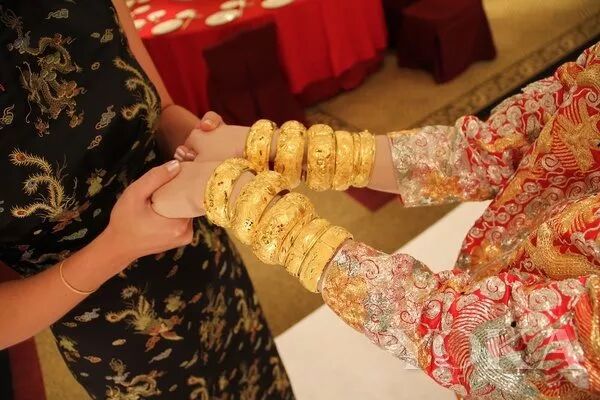 有的地方是出嫁佩戴的金饰越多寓意越好,但是像这种大拇指都要塞的,雪姨还是建议各位新娘其实可以考虑搭配在其它地方的