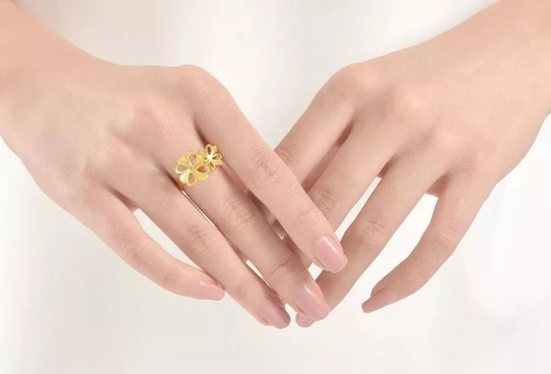如果是婚礼当天需要佩戴的话,建议可以选一些端庄大气的足金戒指,款式和工艺都可以相对来说复杂,比如一些花朵状的足金戒指,搭配龙凤褂会很好看