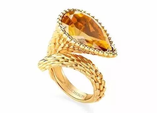 宝诗龙2017波西米亚蛇型彩色系列黄水晶大号黄金戒指